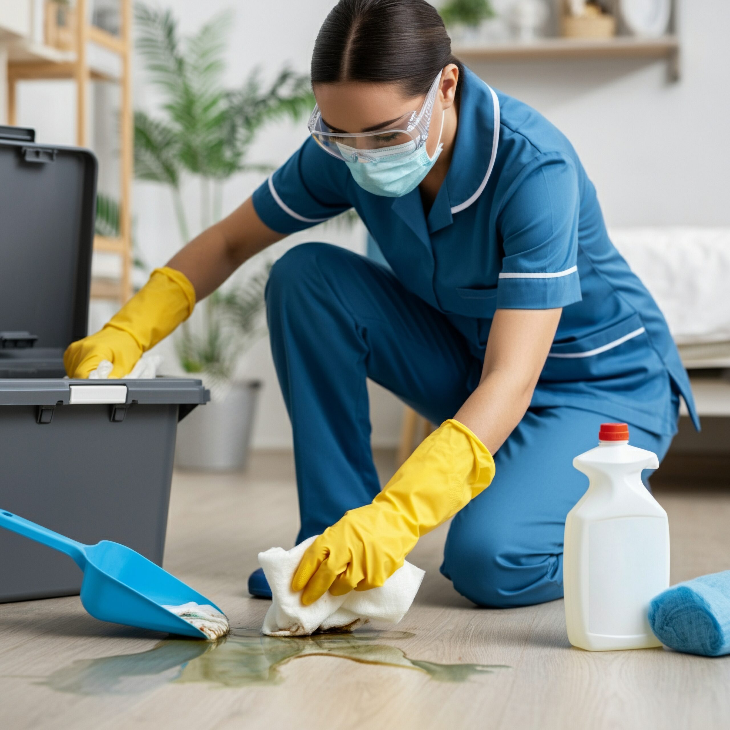 Professional cleaning teams follow a multi-step process to ensure vomit is removed safely and completely: