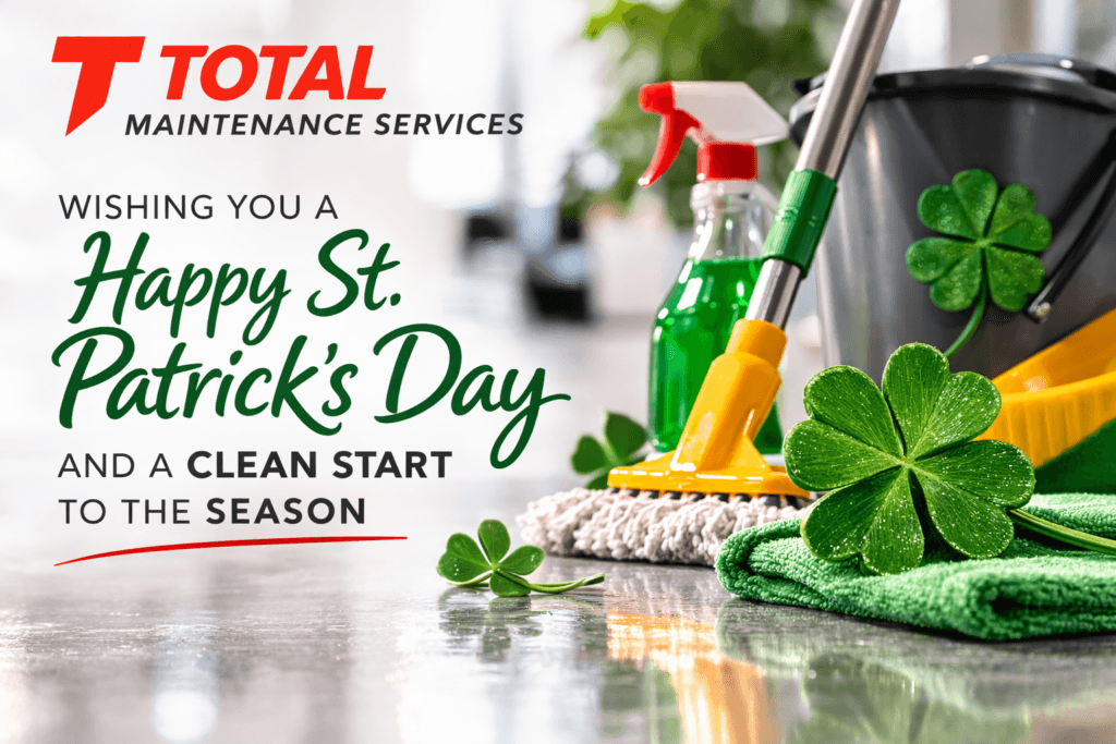 Celebrate St. Patrick’s Day with a cleaner workplace. Total Maintenance Services provides professional office cleaning, floor care, lobby cleaning, and facility maintenance to keep your business looking its best.